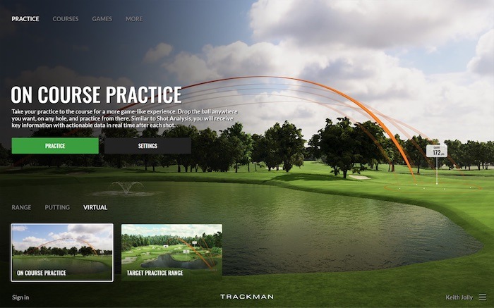 The On Course Practice environment enable you to select ANY position from ANY TrackMan golf simulator course.